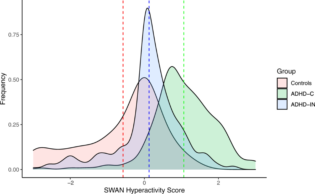 Now let us turn to ADHD. I could almost simply replace the word “hypertension” in the preceding paragraph with “ADHD” and it would remain largely correct, but let’s walk through it. Blood pressure is measured with a sphygmomanometer, while ADHD is assessed with one of many standardized rating scales for ADHD. The bell curve of the scores of one of these scales (Strengths and Weaknesses of ADHD Symptoms and Normal Behavior Scale) is shown below: